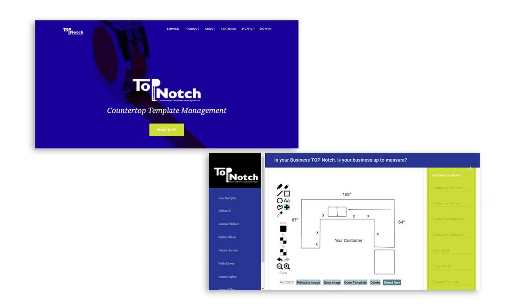 Top Notch was a full stack web based application that I developed. It was an application that allowed you to draw construction measurements for customers and track other customer job related specifications and data in one place.